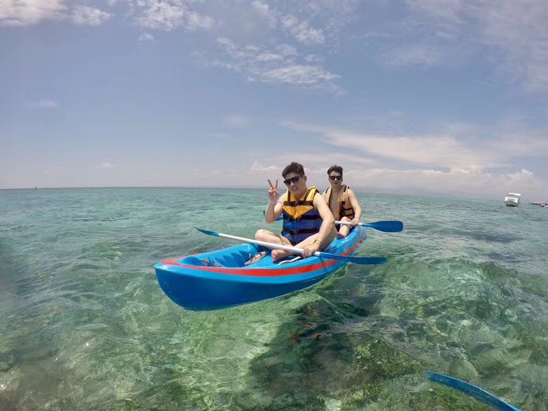 都到了海边,怎能不和大海亲密接触呢,天然的潜水场,热带鱼的故乡,鱼的种类齐全,数目之多,上百只鱼在水中舞蹈,缤纷的色彩,令人眼花缭乱。潜水好还坐了独木舟,去感受蓝梦岛的碧海蓝天,远眺阿贡山的云雾。